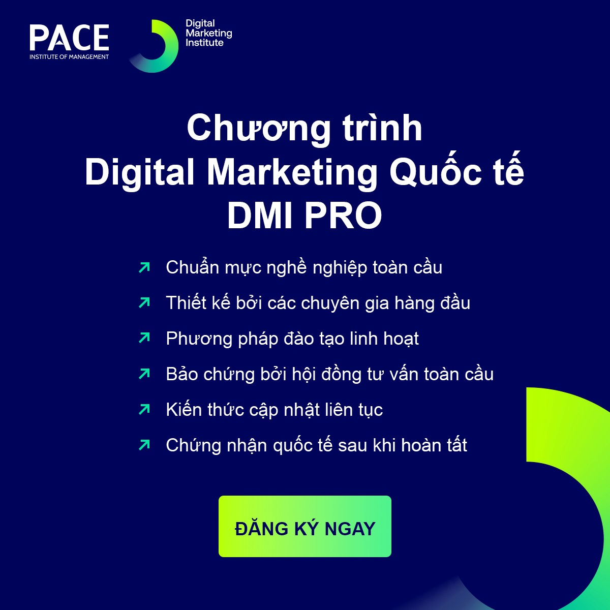 PACE Institute of Management a leading management institute in Vietnam with over two decades of experience in developing leadership and professional excellence has partnered with the Digital Marketing Institute (DMI) to officially deliver DMI PRO in Vietnam through its PACE School of Marketing Management (PACE-SMM).